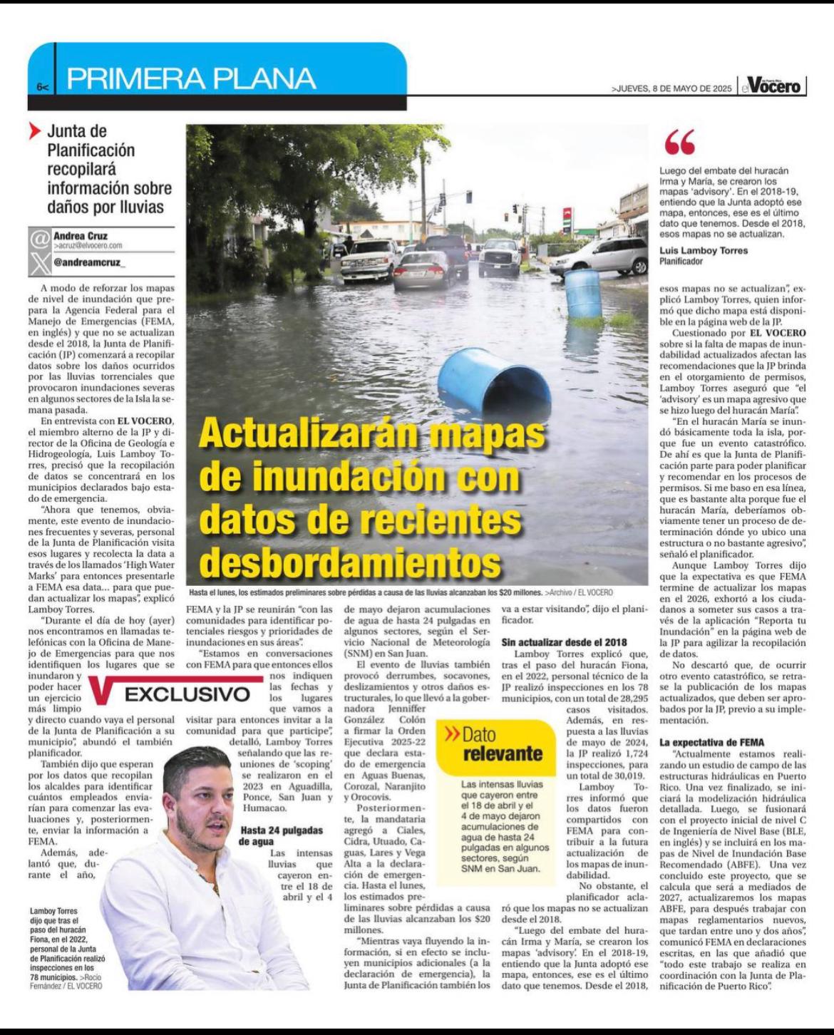 Junta de Planificación recopilará información sobre daños por lluvias